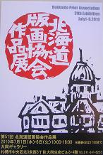 今回で51回を迎える北海道版画協会作品展を見て来た。 3Fの入口すぐ脇に、石川亨信作品「呼気」。一見、全スミベタというダイナミックで、しかしあちらこちらに擦れがあり、これが”呼”なのかも知れないと思う。 尾崎淳子作品「麦一青」。タイトルがいいなぁ、青い空には雪の軌跡が引かれている。その下の地に麦の穂。金色の枡があちこちに。いかにも北海道の農業という感じであると思えた。 金沢一彦作品「帰郷」。これは列車の屋根に座る親子で、幸せ満点という感じ。なんだかアメリカに密入国するためにしがみ付いている映画のワンシーンとは、全然違って、生活感がまったくない。メルヘンというべきか。 ![]() 木の瀬博美作品「Breath シリーズ」。木の葉のレリーフのよう。3枚、4枚と組み合わせて、濃いブルー。 「憂い」というのは宮井保郎作品。青のなかに白い輪があり、そこから零れるように沸き立つオーロラ。なんだか氷の輪のようにも思えるが、ひょっとして地球? 変に明るい感じなんですが。 一番好きだなと思ったのが、水野恵子作品「6月の庭」。庭に生える草なのだろうか、球面に閉じ込められているように丸まっている。まるで極端な魚眼レンズを覗き込んだみたい。ブラックな色合いなんだが、眼球に閉じている、目をつぶった風景にも思える。 ![]() 福岡幸一作品「フィロセラス科」。これはアンモナイトであった、まさに、写真としての版画というのは、こうしたものであったのかと推察されるのだ。 |