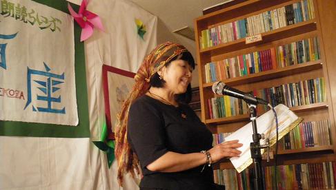 後半の朗読は坂本孝一氏、作品「さおばかり」。もう一篇の作品「黄色い犬」、崖の前には打ち広がる波。岬の突端に患う犬。荒れる海の前に、眠りと青い祈りと。 内藤千尋氏は、「バサラジュエリー」に作品を出されている作家さんであります。今回は、金井美恵子の「ゴールデンウィーク」を朗読、夏を見つけに行くのだ。 ![]() 朗読 / 内藤千尋氏 根深昌博氏は作品「イージーライダー」。今回の朗読会用にJRの中でも推敲してきたとのこと。主人公のファンであったようであります。憧れということ別れということ。 田中美智子氏は、朗読をよくされるが詩は始めての挑戦とのこと。谷川俊太郎から「泣く」を、ゆったりとした声で。 千歳の綾部清隆氏が作品「川原のメルヘン」を。オマエは川原で拾われたのだぞ・と話しかけたのは、母であったか、小石のささやきか。ひとつの小さな出会いが生まれる、夜の川原の野外劇場。 ![]() 朗読 / 綾部清隆氏 渡辺宗子氏作品「カキは死んでいる」、作品「ヘルメット考」首がなくとも、ヘルメットがあれば、オイルがあれば…男の首と言うものは、そんなものかもしれないがなぁ。 萩原貢氏は作品「埠頭二景」で跳ね上がる魚たちの生を。神の指、切れないナイフのことどもを。 「高い鳥たち」で飛ぶということの世界、出口のない迷路でもある落ちていく影のこと。 さて、特別ゲストである荒巻義雄氏が詩を朗読された。作品「虫族のうた」で、人間の生と死を結ぶ虫たちのこと。スカンジナビア半島を侵食した氷河期の記憶、亡き母の追憶とともに作品「骸骨半島」。チベットの鳥葬の作品も披露された。 主宰の森れい氏「離陸」。江戸っ子の母親が、蝦夷っ子になるだけであるわけだが、決別という嗚咽を抱えてのフライトを聞く。そしてラストに作品「銀の手仕事」、あなたの胸に、まわる光のプロペラを差し上げる。 当日の司会は、嘉藤師穂子氏が一手に引き受けた。 |